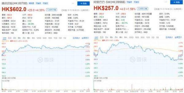 在距离今年7月份腾讯和阿里"港股市值之最"抢夺战仅过去四月余的时间,近日,在《关于平台经济领域的反垄断指南(征求意见稿)》的影响下,腾讯和阿里又进行了港股市值第一的角色互换。11月12日港股收盘,腾讯市值55303亿港元,阿里54762亿港元。截至发稿,腾讯依然高于阿里市值。