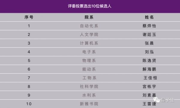 根据清华大学官方消息,2020年清华大学特等奖学金(本科生)答辩会在11月12日下午举行。15位候选人完成答辩后,现场评委投票,选出了前10名单。