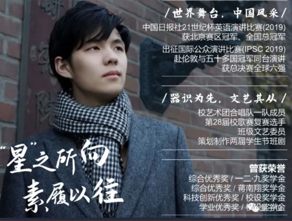 他还曾任电子系无75班学习委员、电子系科协软件部副部长,曾获蒋南翔奖学金、学业优秀奖、科创优秀奖。
