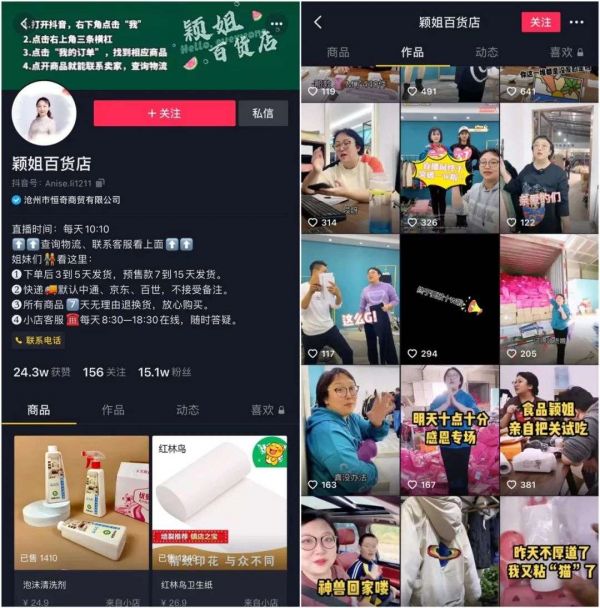 船到桥头自然直。在外部严峻环境的倒逼下,颖姐开始拍摄抖音短视频聚拢粉丝,并在已有粉丝的基础上开通直播带货。随着直播日渐走上正轨,直播间的单日销售额已经达到30万至100万的水平,原本快要陷于崩溃的生意重新在线上找到了转机。