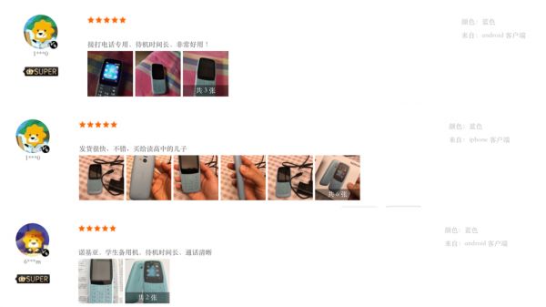 从 Nokia 220、105 和 125 的百条电商评价中,也能窥探到目前还在买「功能机」群体们的目的。