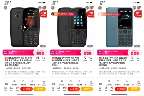 出于好奇,我逐个打开了电商排行榜上的 Nokia 220、105、125 的页面,找了找它们的共同点。