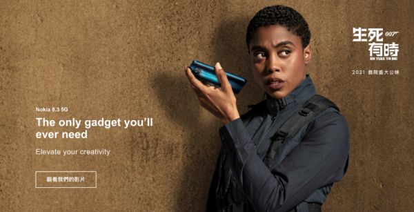 面对 5G 带来的新机遇,现已归属 HMD 的诺基亚反应并不快,现暂仅有一部 Nokia 8.3 5G 计划上市,且这部手机已与 007 系列电影新作《007:无暇赴死》绑定,与电影一起延期了。