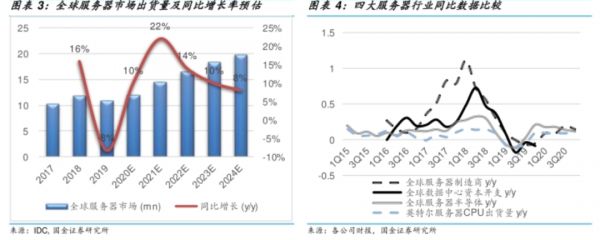 在普通用户看不见摸不着的数据中心,服务器同样是X86芯片的核心战场。根据IDC数据,2019年全球服务器出货量和销售额分别为1174万台和873亿美元。市场预计,全球服务器半导体市场2020年增长将达到10%以上,2021年可增长超过20%。
