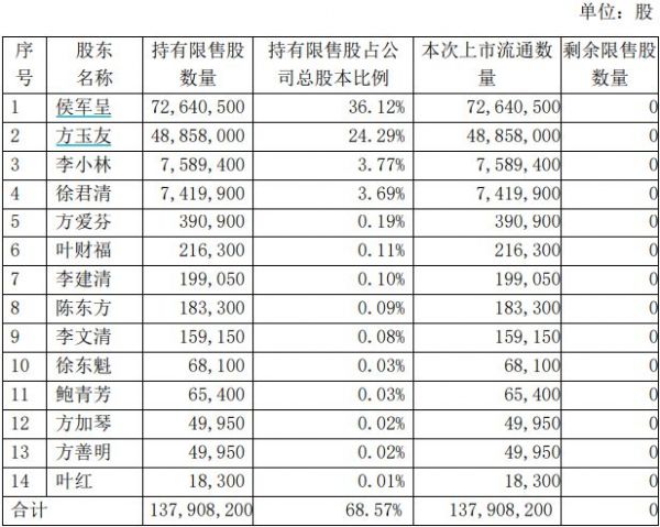 金山办公本次限售股解禁明细 美妆企业珀莱雅(603605.SH)迎来了上市三年的首发限售股解禁。公司11月16日有1.38亿股首发限售股解禁,占总股本比例68.57%,是解禁前流通盘的2倍有余,涉及市值246.69亿元。此次解禁后,珀莱雅几近全流通。