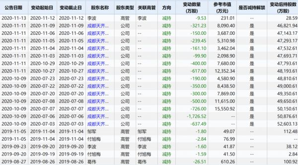 据资料显示,发生“暴雷”之前,部分机构以及天齐高管已经及时“跑路”。其中,第一大股东成都天齐实业(集团)有限公司出手频繁,7月3日到11月9日期间,累计出手14次,减持6418.7万股,套现金额达到9.07亿元。