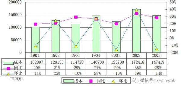 京东第三季度成本为1474亿元,较上年同期的1147亿元增长28%。
