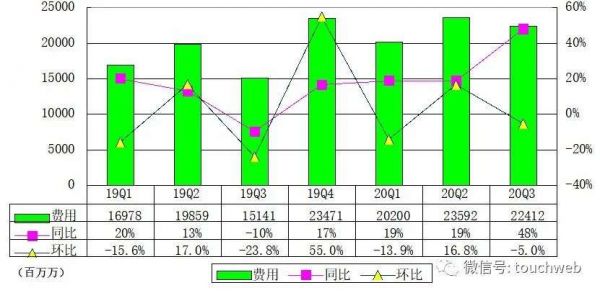 京东第三季度费用为224亿元,较上年同期的151.41亿元增长48%。