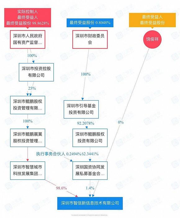 天眼查信息显示,深圳市智信新信息技术有限公司成立于2020年9月。从股权穿透信息来看,最终的大股东为深圳市国资委。