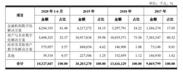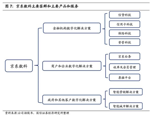 相比而言,京东数科还弱化了京东白条、金条的2C属性。招股书显示,旗下业务包括“商户与企业数字化解决方案”、“金融机构数字化解决方案”、“政府及其他客户数字化解决方案”三大板块。
