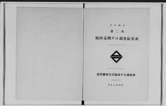 大正四年(1915年)第二次临时台湾户口调查结果表(图片来源:日本国立国会图书馆)