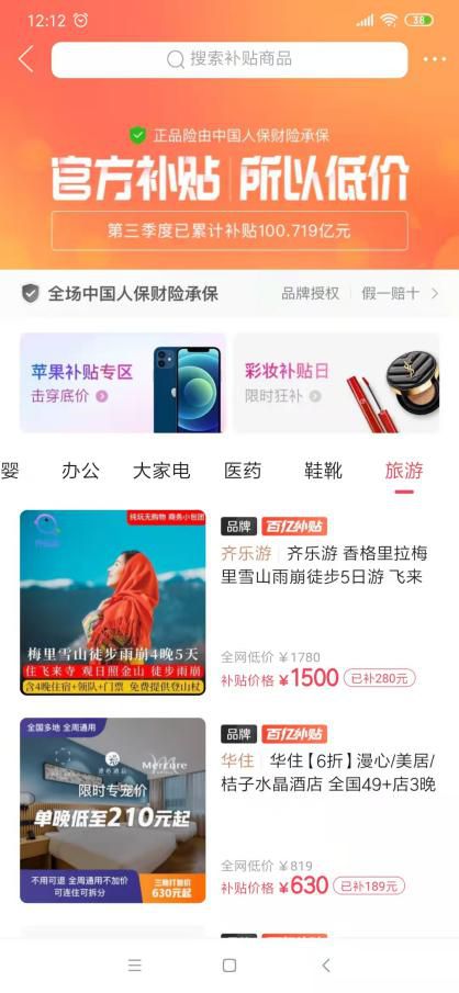 拼多多“百亿补贴”悄然上架旅游产品已有一段时间,在很多人还未察觉的情况下,有部分用户反馈旅游产品在“百亿补贴”中已下线。