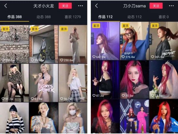 “天才小火龙”、“刀小刀sama”抖音主页截图