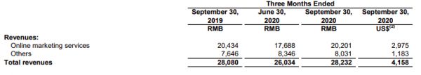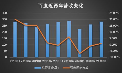 经历了上半年又一次大的团队调整后,百度在2020年第三季度交出了一份相对不错的财报:总营收282亿元,增长幅度不大,但净利润137亿元,环比增长282%,相比之下去年同期的净亏损为人民币64亿元。该季度的增长主要来自于垂直领域广告业务迎来转机,营收也实现正向增长。