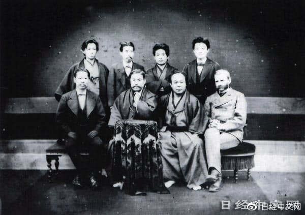 三菱史料馆保留着创业不久的1877年前后拍摄的1张照片。那是创始人岩崎弥太郎和当时的7名三菱领导层的集体照。