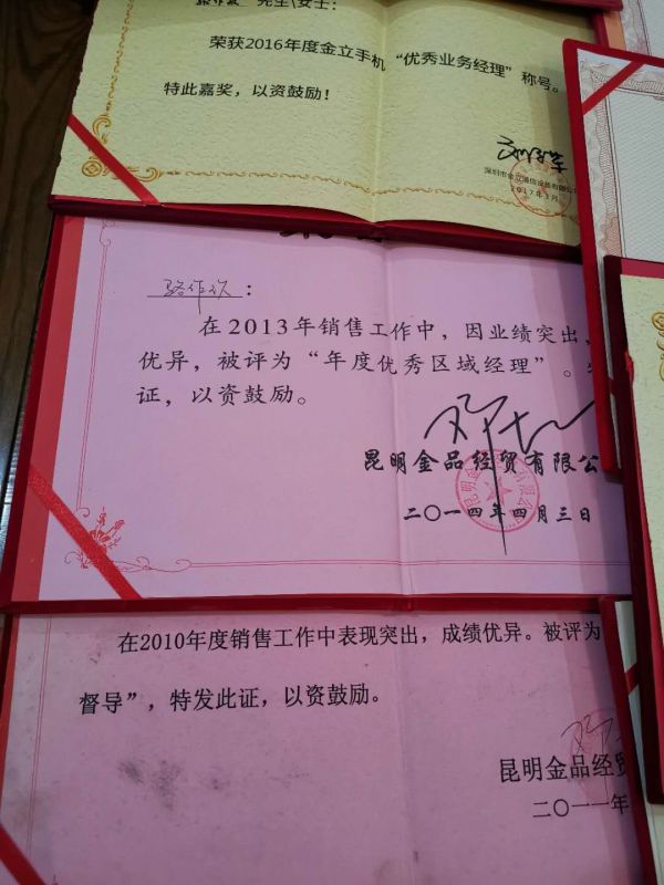 2019年4月,云南省昆明市金立原代理商骆作玖终究扛不住了,作为11年的老员工,他决定离开金立代理商体系。过去一年,骆作玖每月只有几千元的底薪,而曾经辉煌的时候,他曾是年薪百万元的区域优秀业务经理。