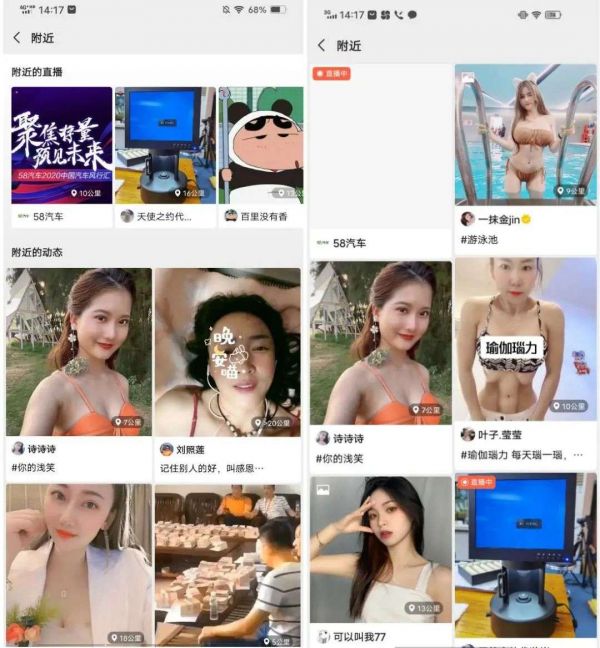 一是视频号右上角右上角的「附近」功能有了较为明显的改版。和之前直播视频穿插在附近视频号内容中不同,内测版本中「附近的直播」被单独分割出来放在了「附近」功能的最上方,同时该版块还会有小标签显示直播距离你有几公里。