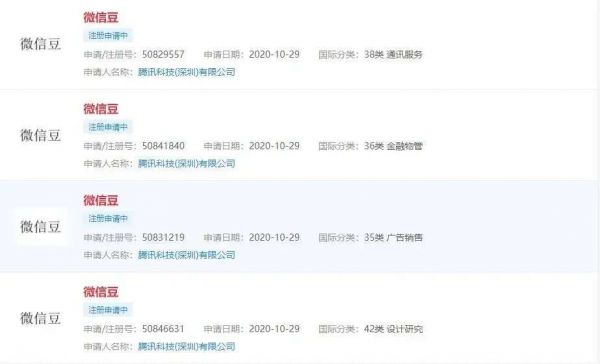 正是因为微信最近的很多改版都围绕着视频号,所以当有消息传出腾讯注册申请了多条 「微信豆」商标信息时,很多人都会猜测这是一个直播打赏的工具。