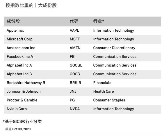 标普500指数被广泛认为是唯一衡量美国大盘股市场的最好指标。该指数成份股包括了美国500家顶尖上市公司,占美国股市总市值约80%。