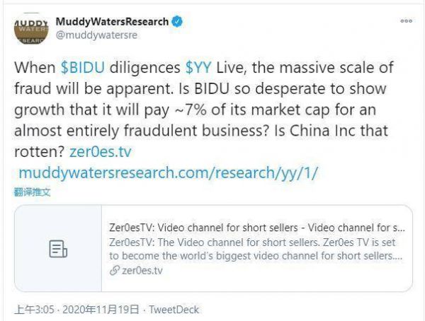 浑水做空,百度收购YY会受阻吗