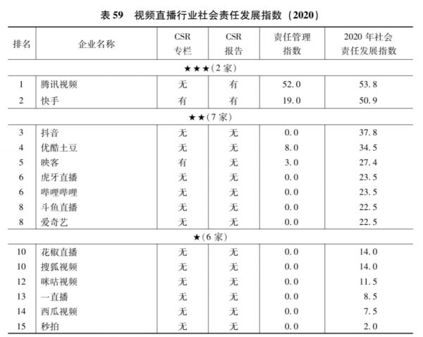 疫情期间,短视频、直播行业引来爆发,快手、抖音日活用户均上了一个台阶,不过在社会责任履行上,却表现平平,行业整体得分偏低。