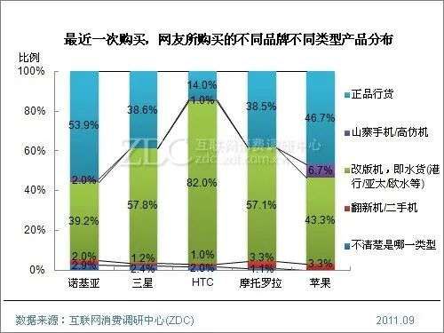 步入到智能机时代后,海外品牌的技术优势让想尝鲜的消费者承担了更高的价格,水货手机比例也进一步增高。根据互联网消费调研中心的数据,2011年,国内的水货手机份额达到均值达到47.3%,高过行货的45.9%(其余数据为山寨机或来源不明)。哪怕是当时国内渠道最完善的诺基亚,其国内市场的水货份额也依旧有39%之多。