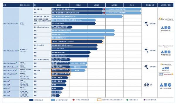 第二代口服双靶点的mTORC1/2抑制剂ATG-008 (onatasertib)具有克服传统mTORC1抑制剂耐药的潜力。目前,「德琪医药」正在开展针对晚期实体瘤的单药及与联合用药的研究。ATG-019 (KPT-9274)具有口服双PAK4/NAMPT抑制剂同类首款的潜力,可用于治疗非霍奇金氏淋巴瘤(NHL)和晚期实体瘤。ATG-017 (AZD0364)是一种强效的选择性ERK1/2抑制剂,在治疗由RAS/MAPK通路异常造成的各种血液系统恶性肿瘤和实体瘤方面拥有同类最佳潜力。