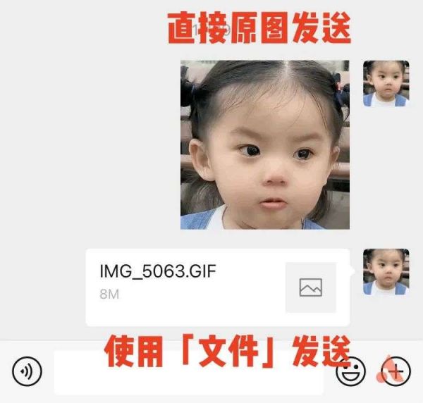 通过发送 GIF 动图,你就会明显感受到通过原图发送和文件发送的展示效果大不相同,如图所示。