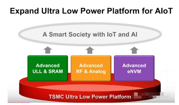 此外,非常重要的一点就是台积电在特殊制程上的长期积累。这可能是很少为人注意的一点。台积电具有MEMS、图像传感器、嵌入式NVM,RF、模拟、高电压和BCD功率IC方面的广泛产线投入。同时,也在逻辑IC技术基础上,加上先进的ULL&SRAM、RF&Analog以及eNVM技术,以实现低功耗以及模拟技术的提升。特殊制程将推出IoT场景和AI场景设备的发展。