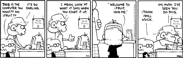乔布斯在短时间内做出了一系列改变:他取消了模仿Macintosh的产品线,重新确立了苹果公司的综合商业模式;他大幅简化了产品类别;他找到了已经在苹果公司工作的一位前途无量的年轻设计师Jony Ive,将公司所有的精力都投入到了iMac上。这是一款真正的硬件承载软件的产品;iMac成为一种文化现象,不是因为经典Mac OS的易用性,当然也不是因为它缺乏内存保护,而仅仅是因为硬件如此简单、如此让人喜爱。