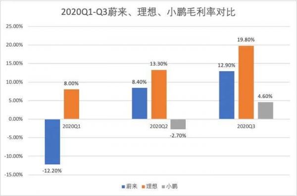 2020年3月,在交出一季度的最惨财报之后,蔚来在二季度的财报中实现了9.4%的整车毛利率,实现毛利率首次转正。