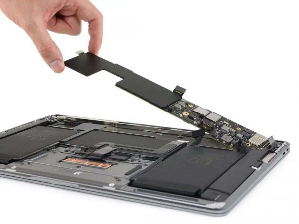 ▲M1 版 MacBook Air 拆解,高度集成化带来了高成本维修,一不小心就要换主板了。图片来自:iFixit