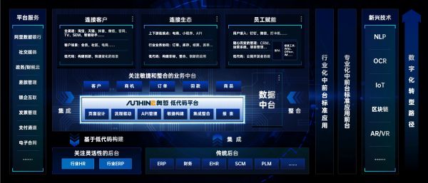 奥哲·云枢的改变是从解决长尾、边缘流程的应用,升级为“企业数字化核心引擎”。具体而言,首先是能帮助客户消除技术架构的复杂度,从而快速响应市场;其次能帮助企业连接内外;并且能够优化内部运营体系;最后,能够帮助企业实现全域连接,支撑全渠道数字营销。
