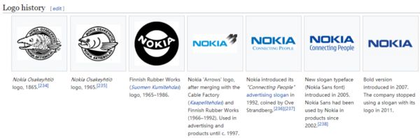 从诺基亚的老logo上能看出,最初的诺基亚貌似和捕鱼有着的密切联系,那时诺基亚的主要产品是橡胶、电缆等工业制品,但商标上却是一个鱼头。