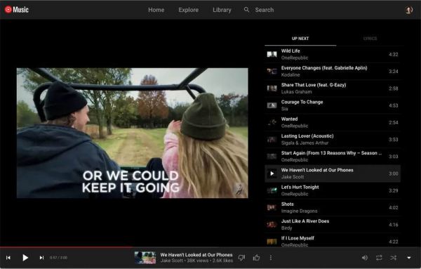 YouTube Music界面虽然是一项音频服务,但它仍然在音乐视频上大放异彩