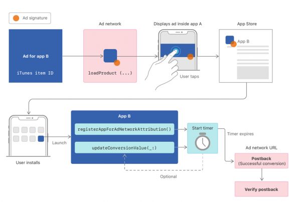 苹果SKAdNetwork的流程框架 图片来源:苹果官网