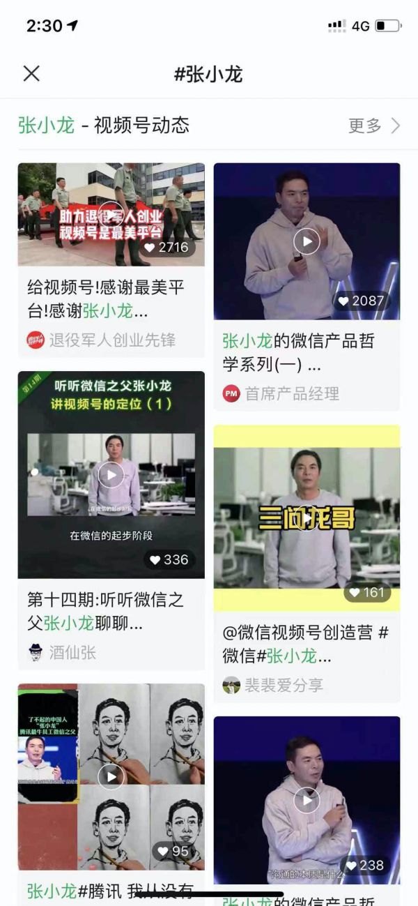以“#张小龙”为例,优先展示视频号动态