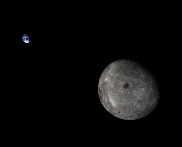 2014年10月发射的嫦娥五号T1试验器拍摄的地球和月球合影©国家航天局