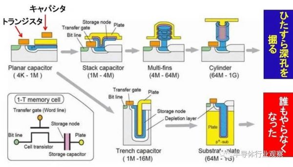 图5:DRAM构造的变迁。(图片出自:日本半导体历史馆)