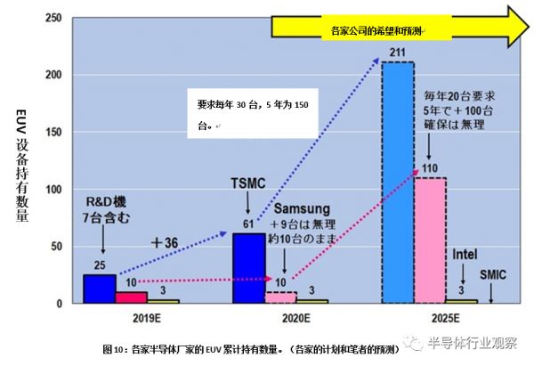 图19:各家半导体厂家的EUV累计持有数量(各家的计划和笔者的预测。)(图片出自:eetimes)