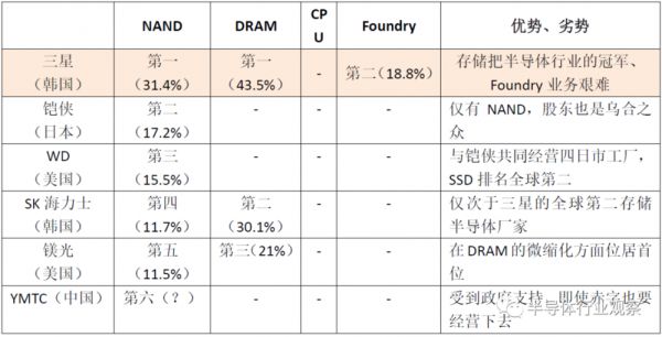 总之,DRAM、NAND的市占率虽然三星第一,如果其他公司率先掌握了新技术,NAND的TOP1的宝座也会不保。
