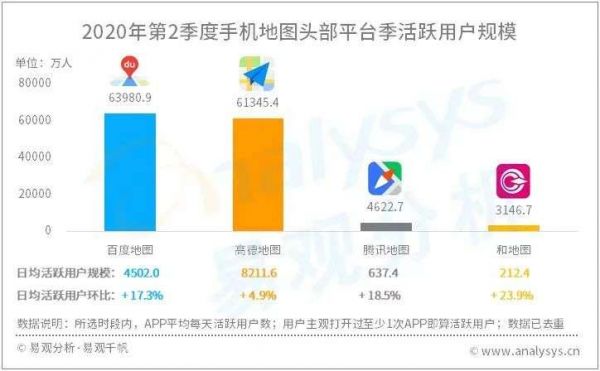 艾媒数据显示,2013年高德地图和百度地图就已占据互联网地图市场前两名,而时至今日,这一格局仍未改变并在不断巩固——易观分析数据显示:今年二季度,地图市场整体活跃用户规模达8.93亿人,其在百度地图和高德地图季度活跃用户规模纷纷超过6亿,大幅领先对手。