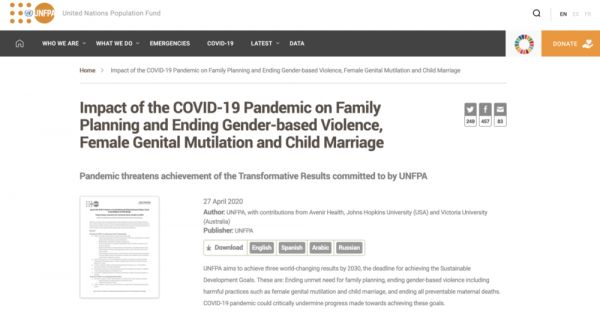 “Impact of the COVID-19 Pandemic on Family Planning and Ending Gender-based Violence, Female Genital Mutilation and Child Marriage”网页截图