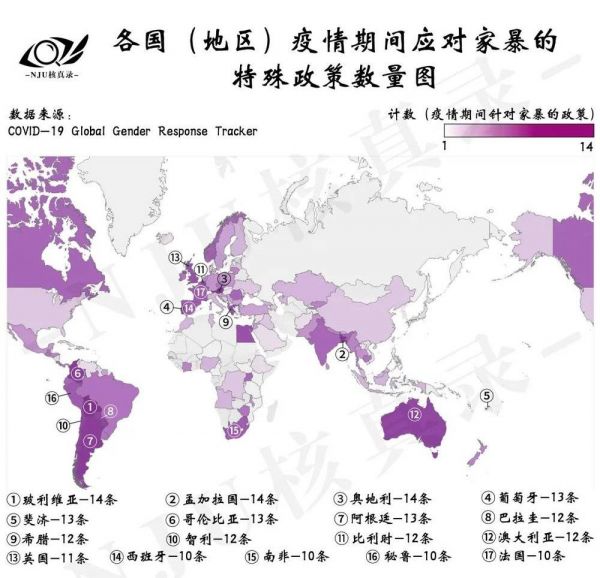 图2: 各国家(地区)疫情期间应对家暴的特殊政策数量地图