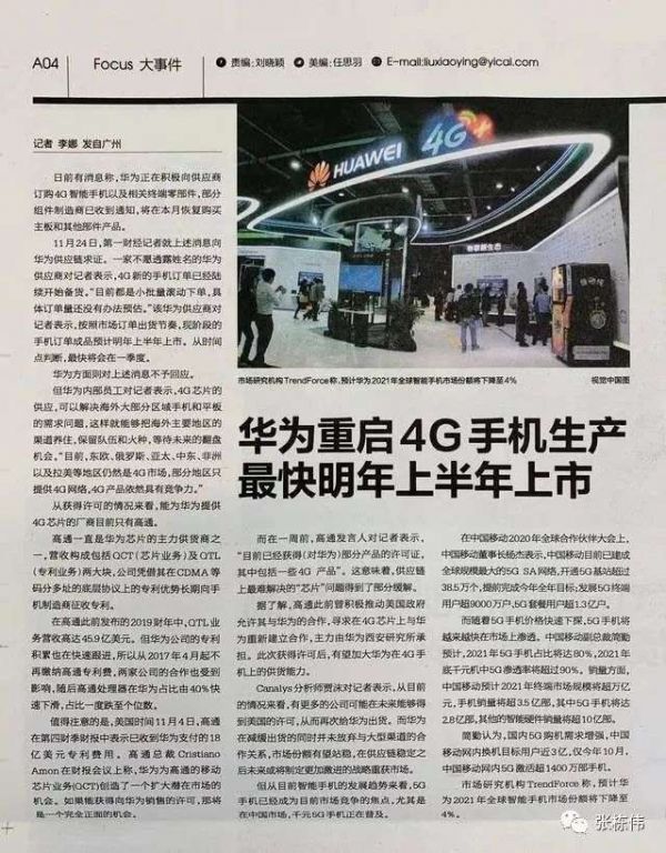 一家不愿透露姓名的华为供应商对表示,4G新的手机订单已经陆续开始备货。