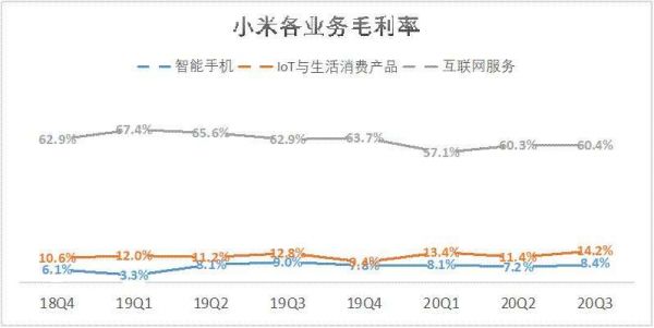 由于加强了促销力度,智能手机业务的同比下降0.6个百分点,达到8.4%。IoT消费产品则受益于产品结构的优化以及智能电视毛利率的改善,毛利率由2019年第三季度的12.8%升至2020年第三季度的14.2%。