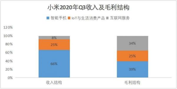 小米营收主要由智能手机、IoT与生活消费产品、互联网服务,三部分构成。