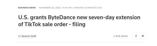 此前,针对8月颁布的行政令,特朗普政府已给予字节跳动15天的延期,直至本周五到期。TikTok方面表示,该行政令的最新期限为12月4日。在美国政府的压力之下,字节跳动为敲定与沃尔玛和甲骨文的交易以将TikTok美国资产转移到新的实体中,已经进行了数月的谈判。美国财政部未在周三立即发表评论。