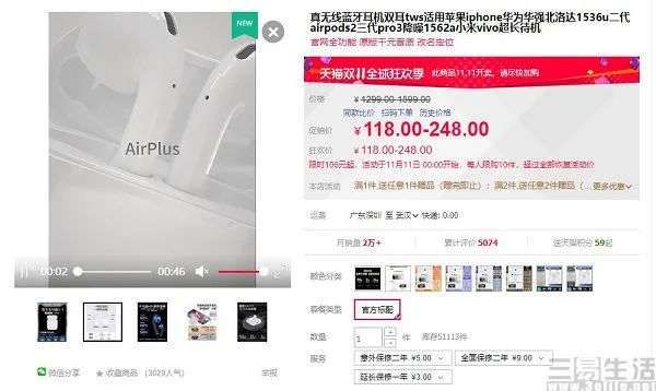 早前,山寨AirPods卖家通常会在售前的交流中直接告诉买家,“我这100多的'AirPods'就是山寨的”,此时卖家与买家之间更类似于,“我知道你在说谎,你知道我知道你在说谎”的关系。然而随着山寨AirPods技术的进步,如今这类产品的卖家却往往会否认自己卖的是山寨产品,甚至还会敢于宣称自家产品可支持序列号查询、带小票,且支持验货。