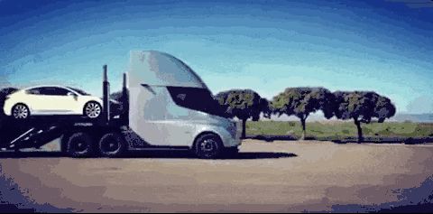 Semi拉着Tesla逛街